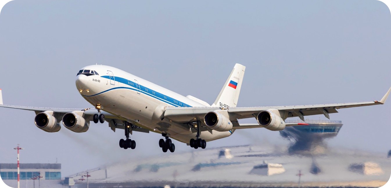 ایلیوشین یک هواپیمای مسافربری بزرگ چهار موتوره روسی است که برای مسیرهای بینالمللی و بینقارهای طراحی شده است. این هواپیما با ظرفیت 260 تا 300 مسافر و برد بالای 11,000 کیلومتر، انتخاب مناسبی برای سفرهای طولانی است. طراحی داخلی جادار، ثبات بالا در پرواز و ایمنی بالا از ویژگیهای این هواپیما است، هرچند فناوری آن نسبت به هواپیماهای غربی کمی قدیمیتر محسوب میشود.