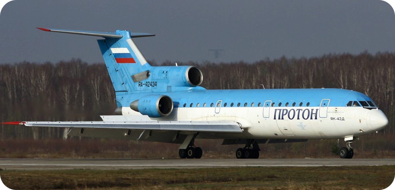 یاکولف یک جت سهموتوره سبک است، که در دهه 80 برای مسیرهای کوتاه داخلی طراحی شد. این هواپیما مسافربری روسی با ظرفیت حدود 120 مسافر، برای پروازهای داخلی و فرودگاههای کوچک مناسب است. اگرچه طراحی و سطح راحتی آن نسبت به هواپیماهای جدید پایینتر است، اما هنوز در برخی خطوط فعال دیده میشود.