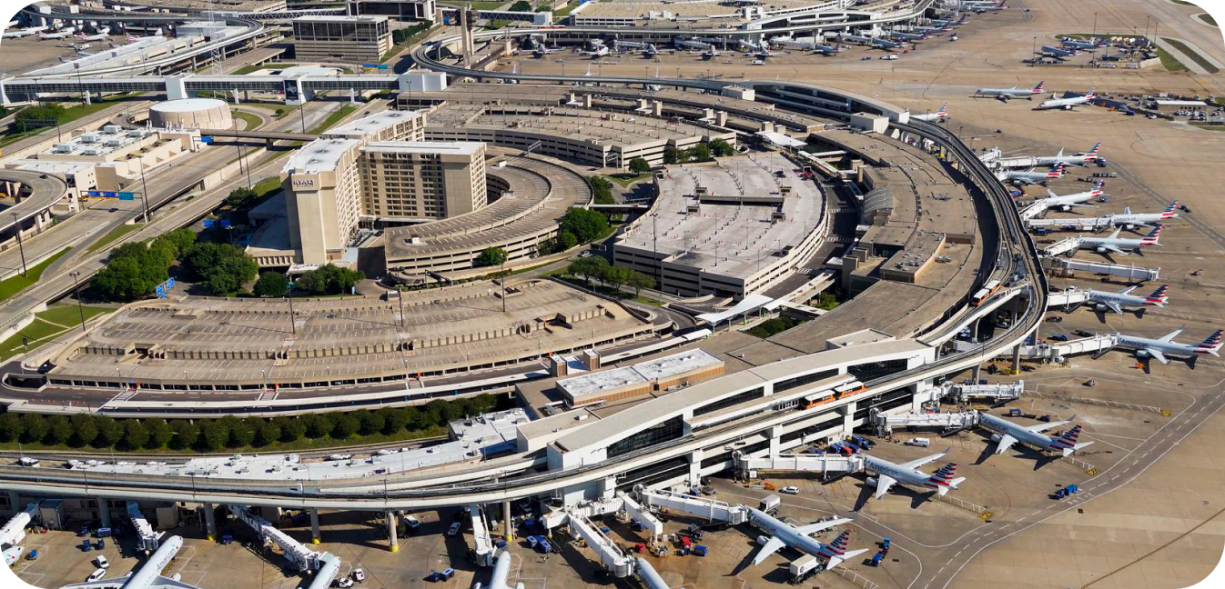 با موقعیتی استراتژیک در ایالت تگزاس آمریکا، فرودگاه دالاس فورتوورث یکی از پرترافیکترین فرودگاههای جهان است و مرکز عملیاتی شرکتهای هواپیمایی آمریکن ایرلاینز و ساوتوست محسوب میشود. سالانه بیش از ۸۷ میلیون مسافر از این فرودگاه عبور میکنند و روزانه هزاران پرواز به بیش از ۲۰۰ مقصد داخلی و بینالمللی انجام میشود.